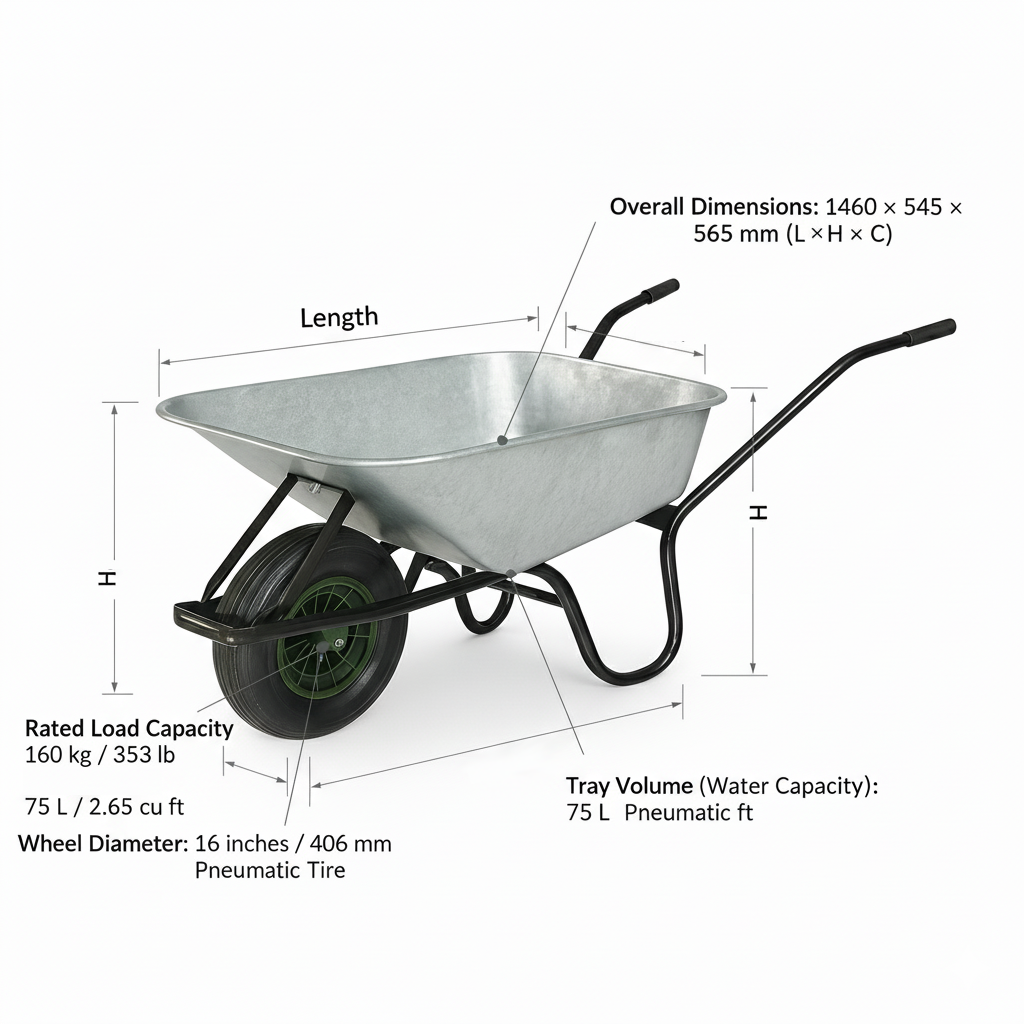 This heavy-duty **75L Galvanized Wheelbarrow** is designed for maximum versatility in construction and gardening. Featuring a rust-resistant tray and a robust 160kg load capacity, it ensures long-lasting performance. Ideal for wholesalers seeking reliable material handling solutions.