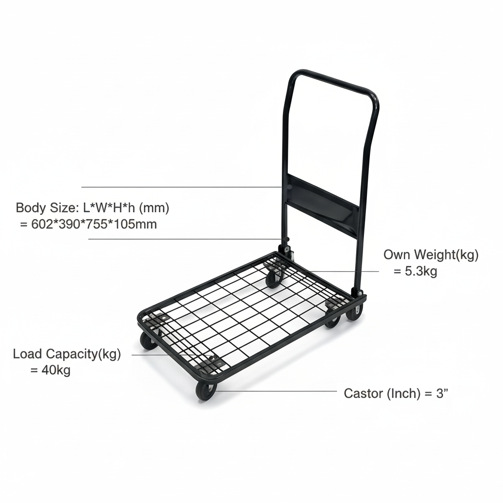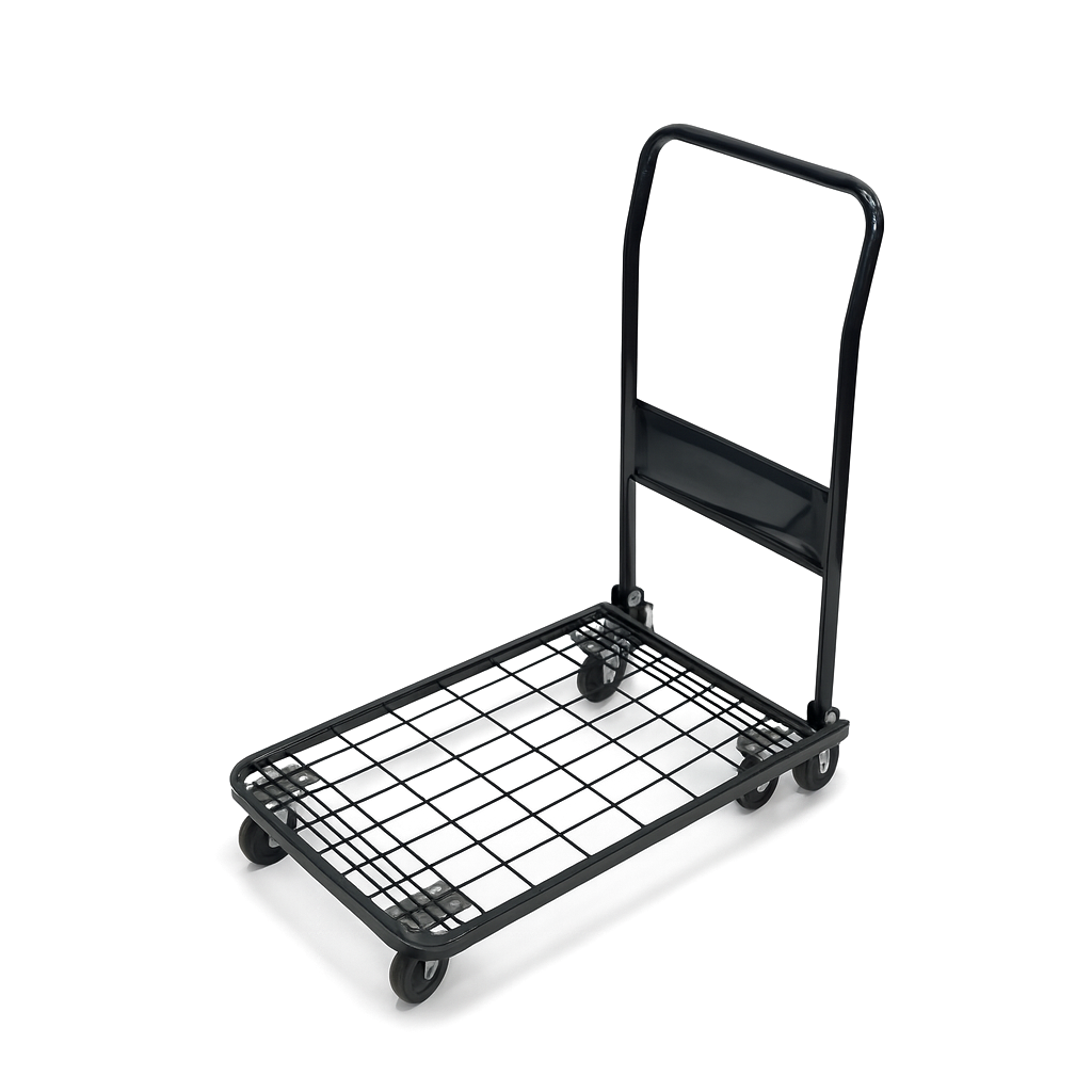 The PH1550 platform trolley is a compact and lightweight transport solution with a 40kg load capacity, 3-inch castors, and a durable steel mesh deck for easy handling of small goods in offices, shops, or warehouses.