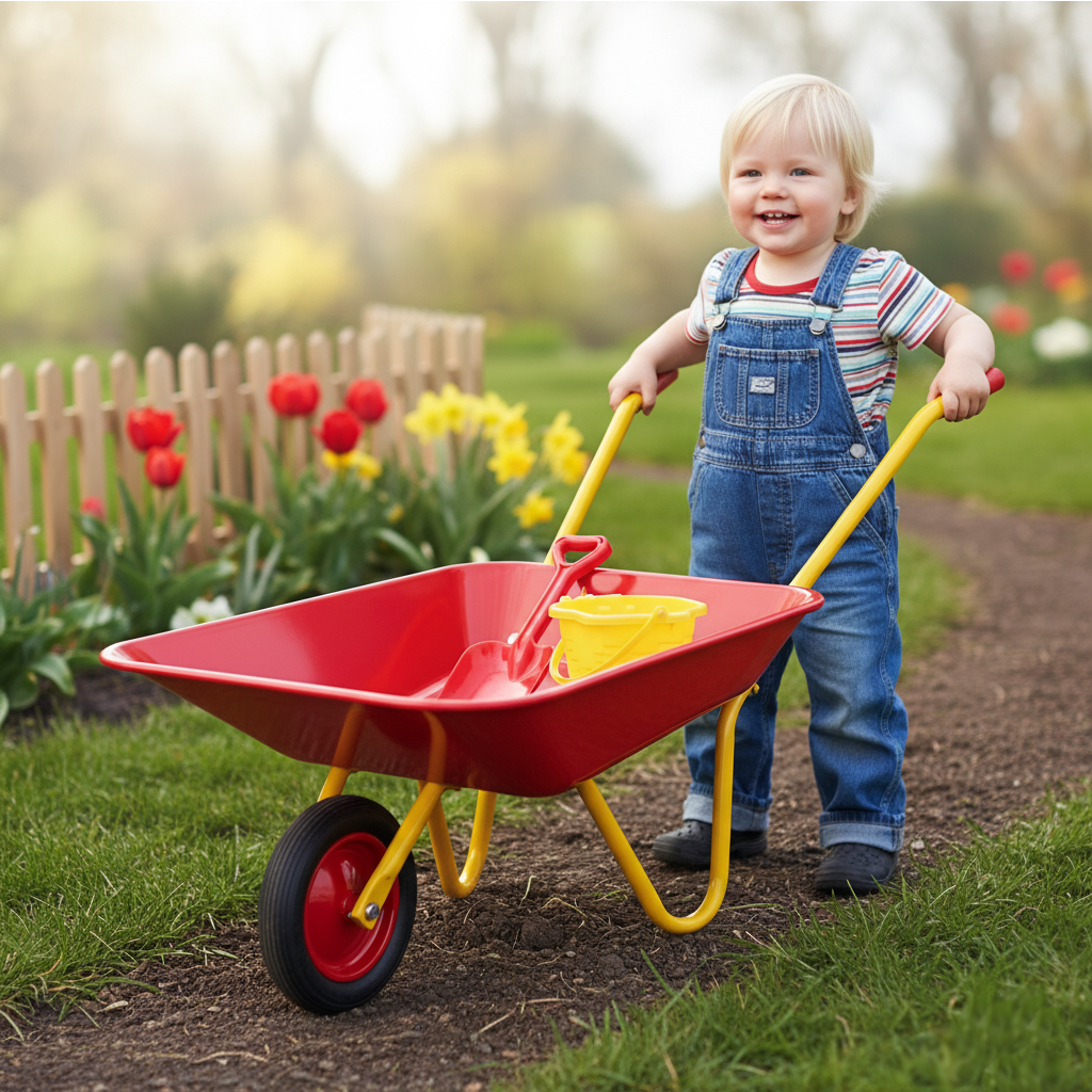 The core value of this product lies in its robust design. While it is sized for children, the manufacturing process adheres to strict quality controls. The steel tray provides a realistic experience, allowing children to move soil, sand, or toys with ease. For wholesalers and retailers, this product represents a lucrative cross-sell opportunity, sitting perfectly between the toy category and the functional gardening equipment section. It encourages outdoor engagement, promotes physical coordination, and serves as an excellent entry point for the next generation of DIY enthusiasts.