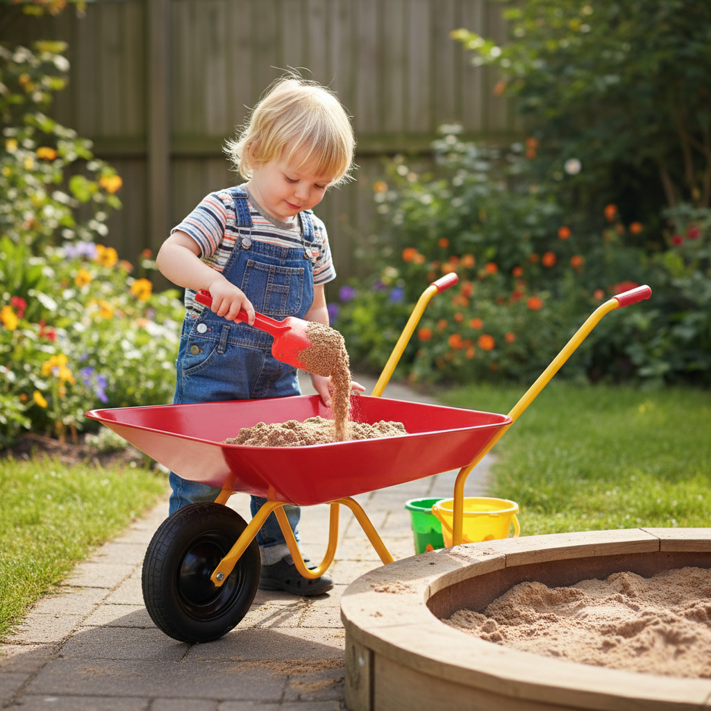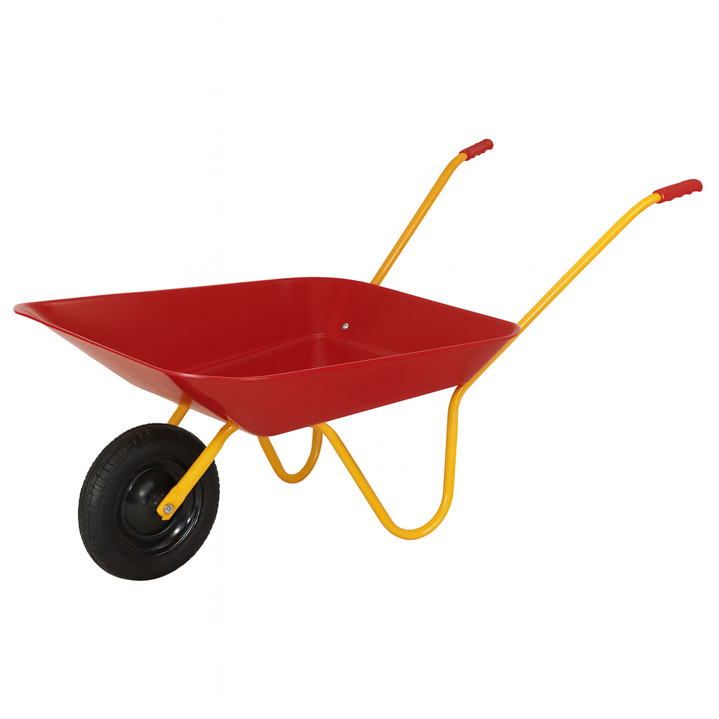The Kids Steel Wheelbarrow WB0101 addresses a specific market need for durable, educational outdoor equipment. Parents and educators are increasingly looking for tools that encourage physical activity and outdoor engagement. This wheelbarrow features a robust steel tray and a tubular steel frame, ensuring it withstands the rigors of sandbox play, beach trips, and light gardening tasks. Its lightweight design (only 2.2kg) allows children to maneuver it easily, while the solid construction ensures it lasts through seasons of use.